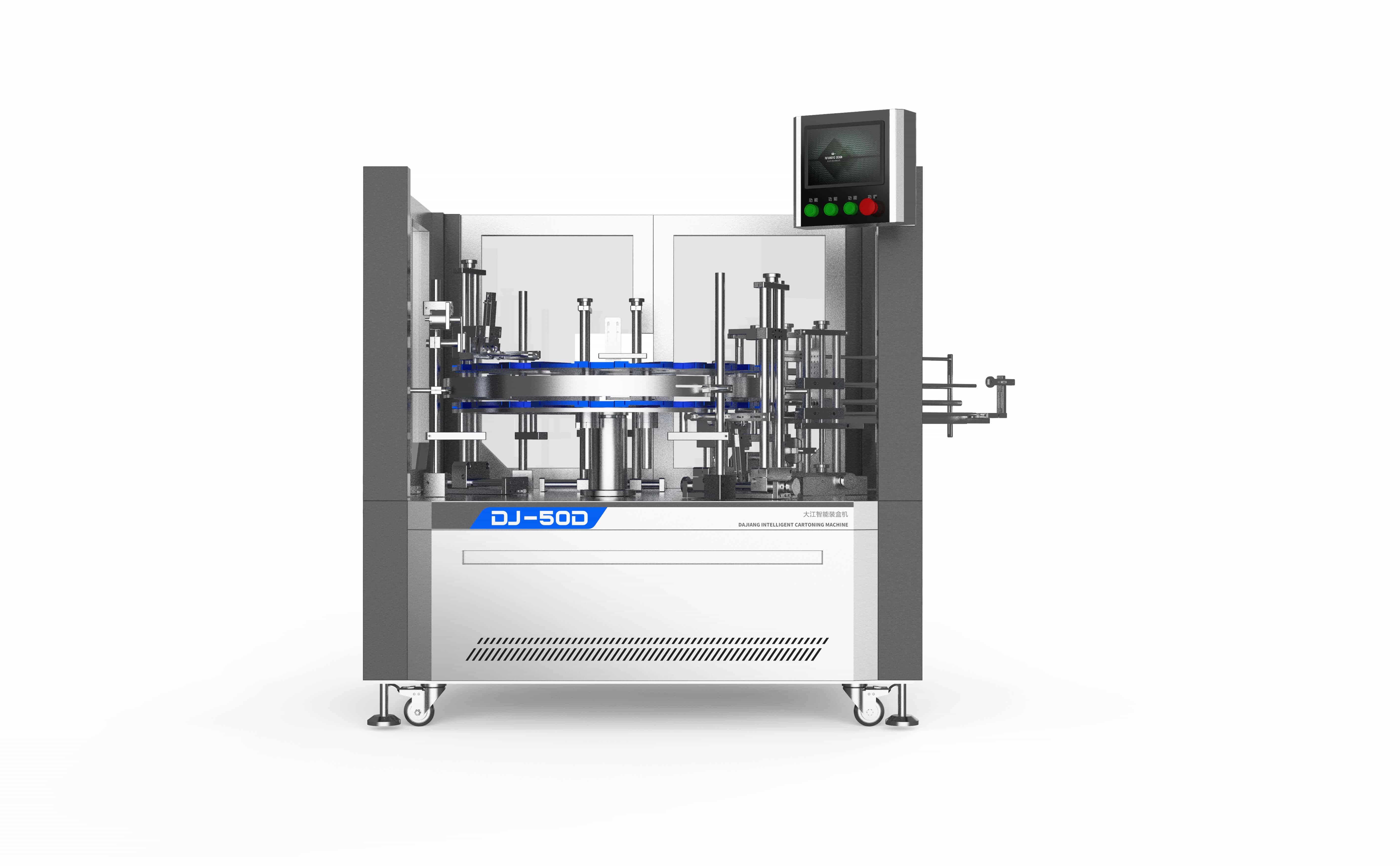 DJ-50多功能立式裝盒機適應:制藥行業,食品行業,化妝品行業,電子行業紙盒立式自動成型包裝。